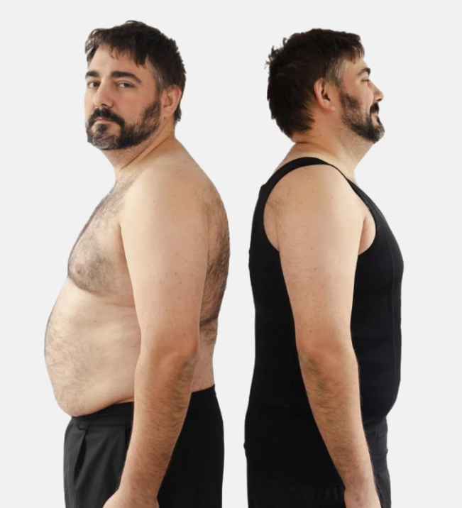 Flattens chest and tucks belly immediately.